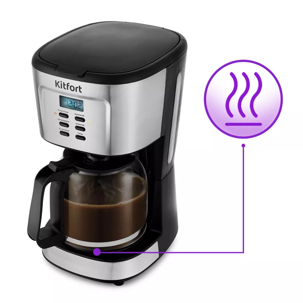 Кофеварка KITFORT мощность 900 вт емкость резервуара 1,5 л КТ-727 поможет приготовить ароматный напиток из молотого кофе. Она компактная и простая в использовании. Кофеварка подойдёт для приготовления кофе в домашних условиях или в офисе.