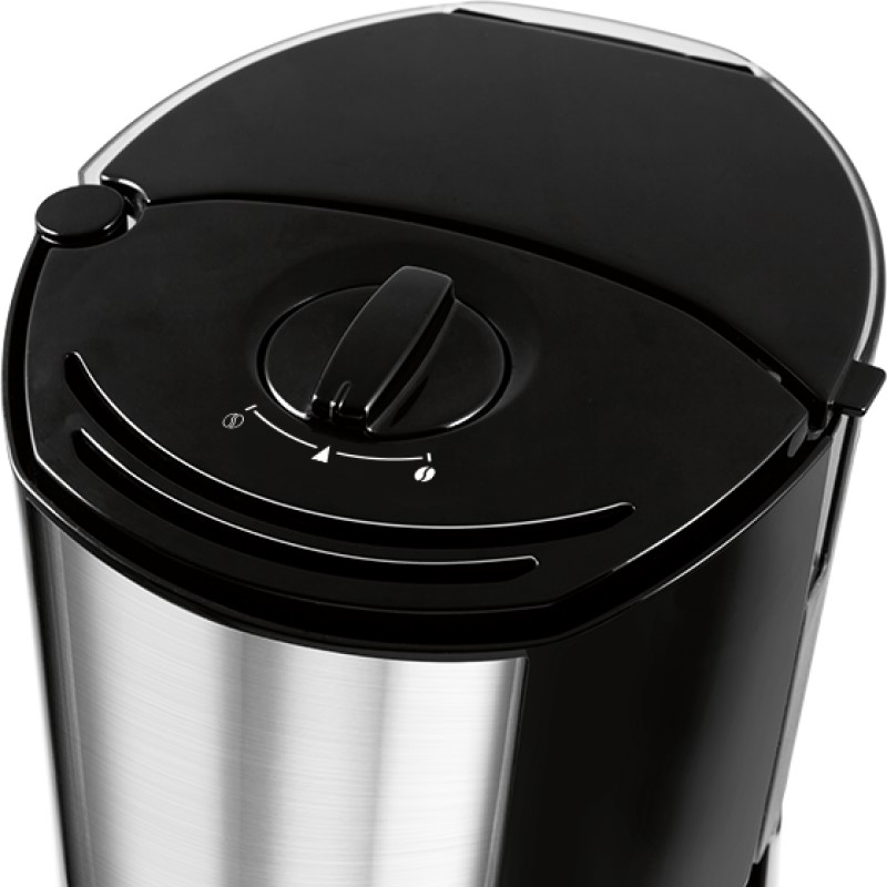 Линейка домашних капельных кофеварок от Melitta. На крышке есть регулятор, который регулирует скорость подачи воды в воронку, что позволяет контролировать экстракцию и подстраивать работу кофеварки под выбранный объем приготовления: поллитра или литр.