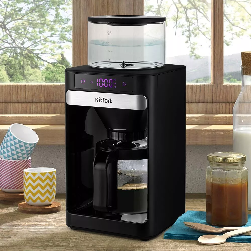 Воронка кофеварки оборудована системой «капля-стоп»: вы можете налить кофе в чашку, не дожидаясь окончания приготовления. Также у воронки есть регулятор интенсивности подачи кофе. Чем медленнее кофе поступает в кофейник- тем крепче получается кофе.