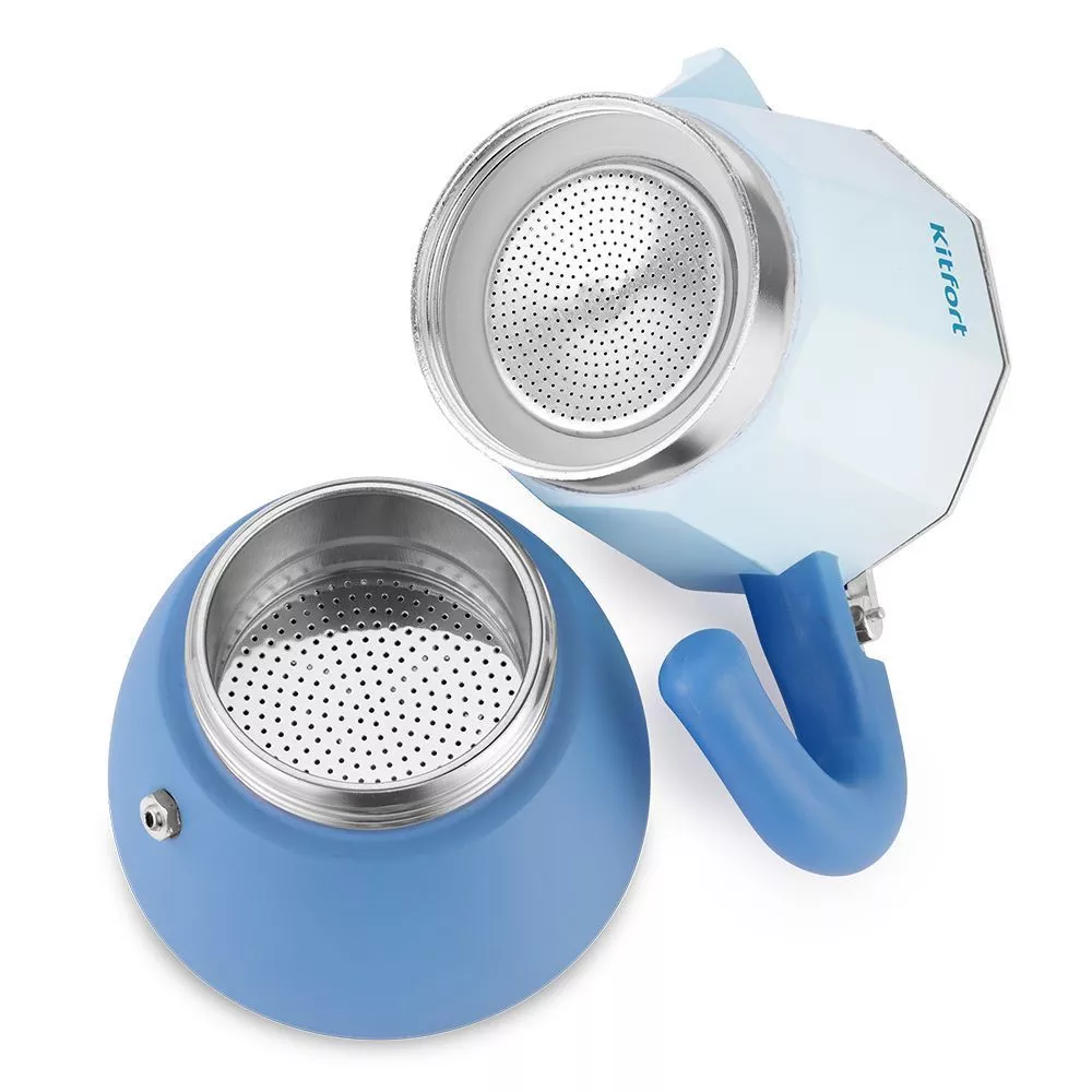 В воронку с фильтром кофеварки КТ-7151 помещается около 34 грамм кофе, а ёмкость резервуара для воды – 340 мл. Она рассчитана на приготовление 6 чашек по 40 мл.