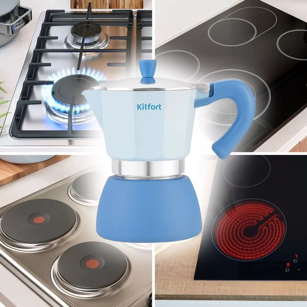 Гейзерная кофеварка КТ-7151 подходит для использования на газовых, индукционных, электрических и инфракрасных плитах. Рекомендуется включать плиту на среднюю мощность при заваривании кофе.