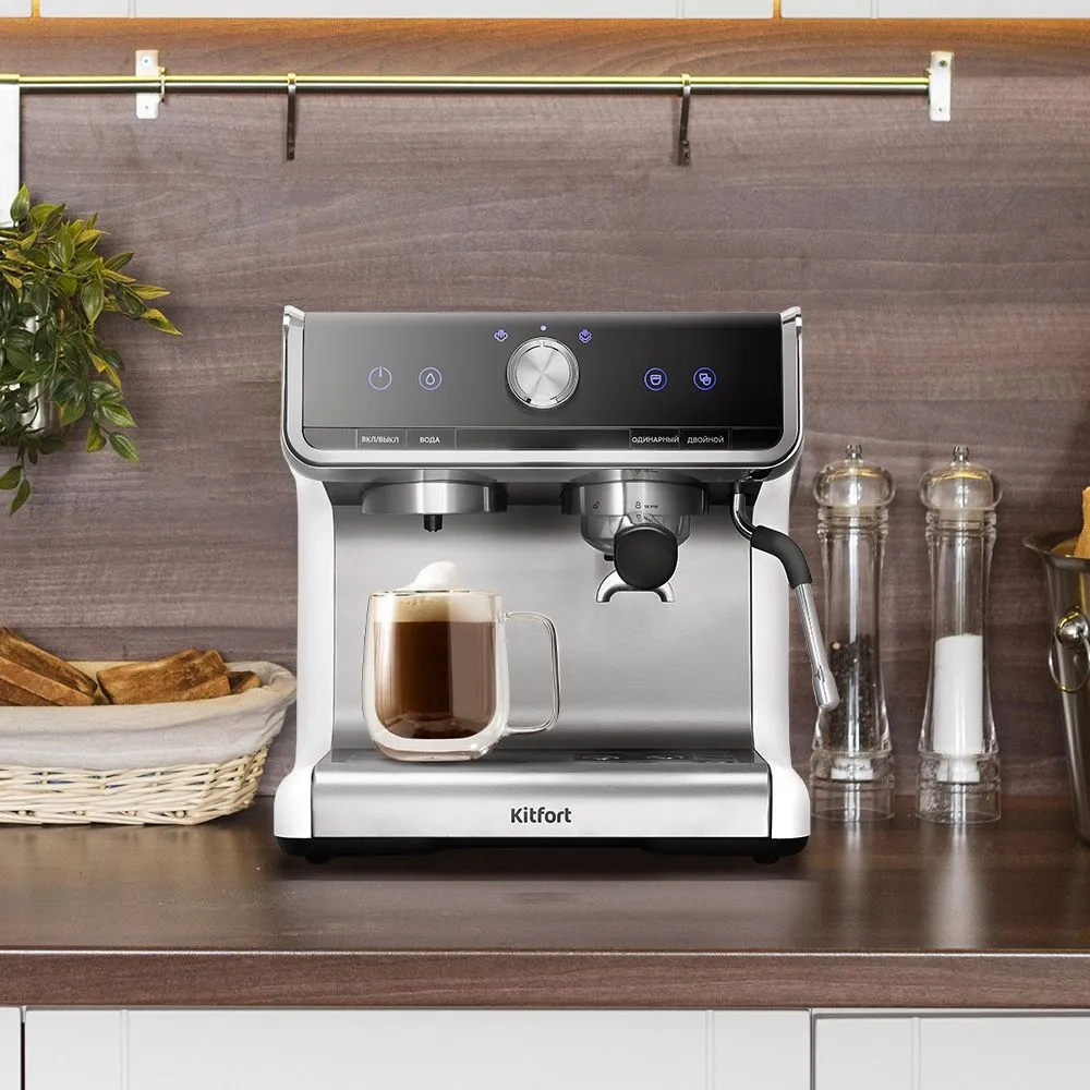 Кофеварка КТ-7170 поможет приготовить кофе эспрессо, капучино или латте. С помощью стимера вы можете приготовить молочную пенку, а также подогреть паром остывший чай или молоко.