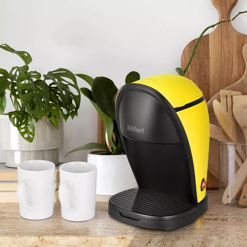 Капельная кофеварка КТ-7188 готовит ароматный чёрный кофе из молотого кофе одним нажатием кнопки.