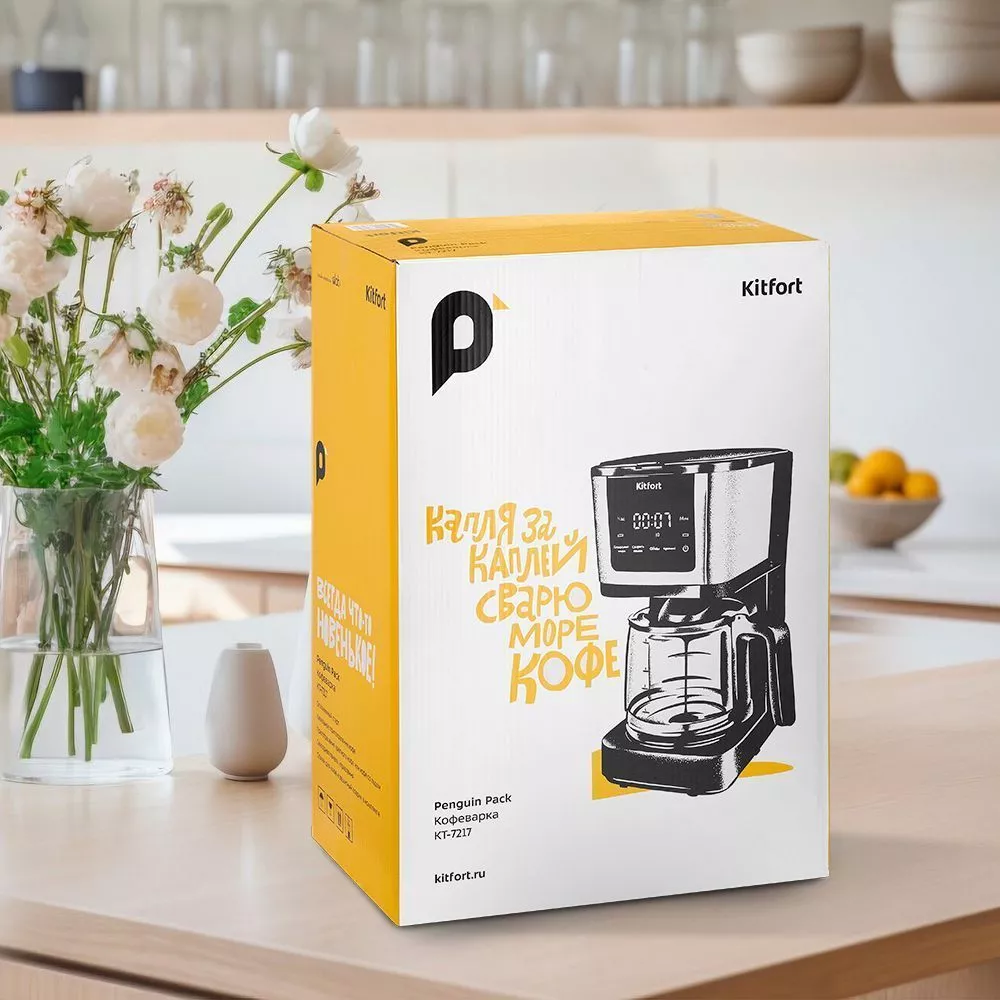 Капельная кофеварка КТ-7217 готовит ароматный чёрный кофе из молотого кофе. Она компактная и простая в использовании. Кофеварка идеально подойдёт для приготовления кофе в домашних условиях или в офисе.