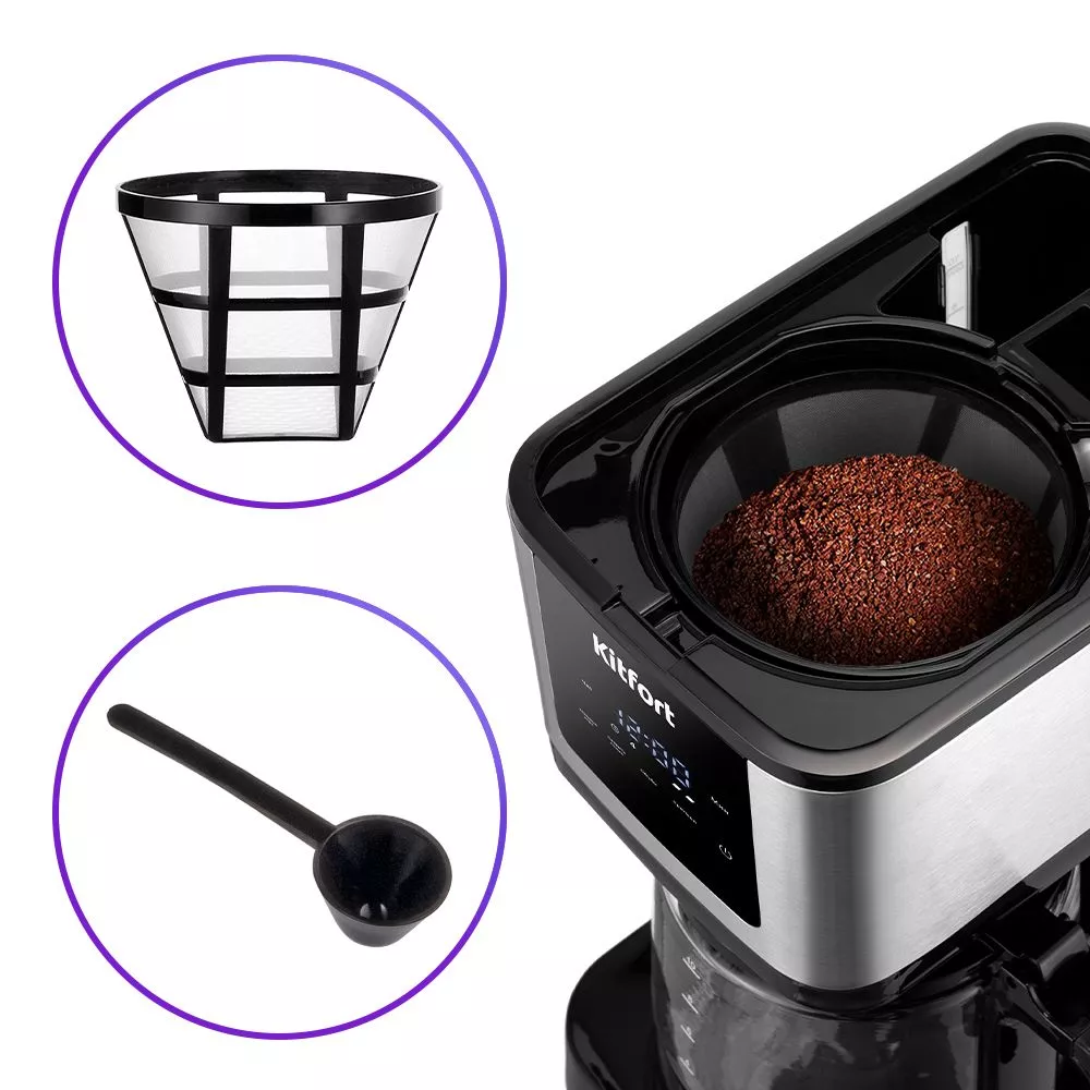 Капельная кофеварка КТ-7217 удобно разбирается для быстрого ухода – так прибор легко поддерживать в чистоте. Фильтр и воронку важно очищать после каждого использования.