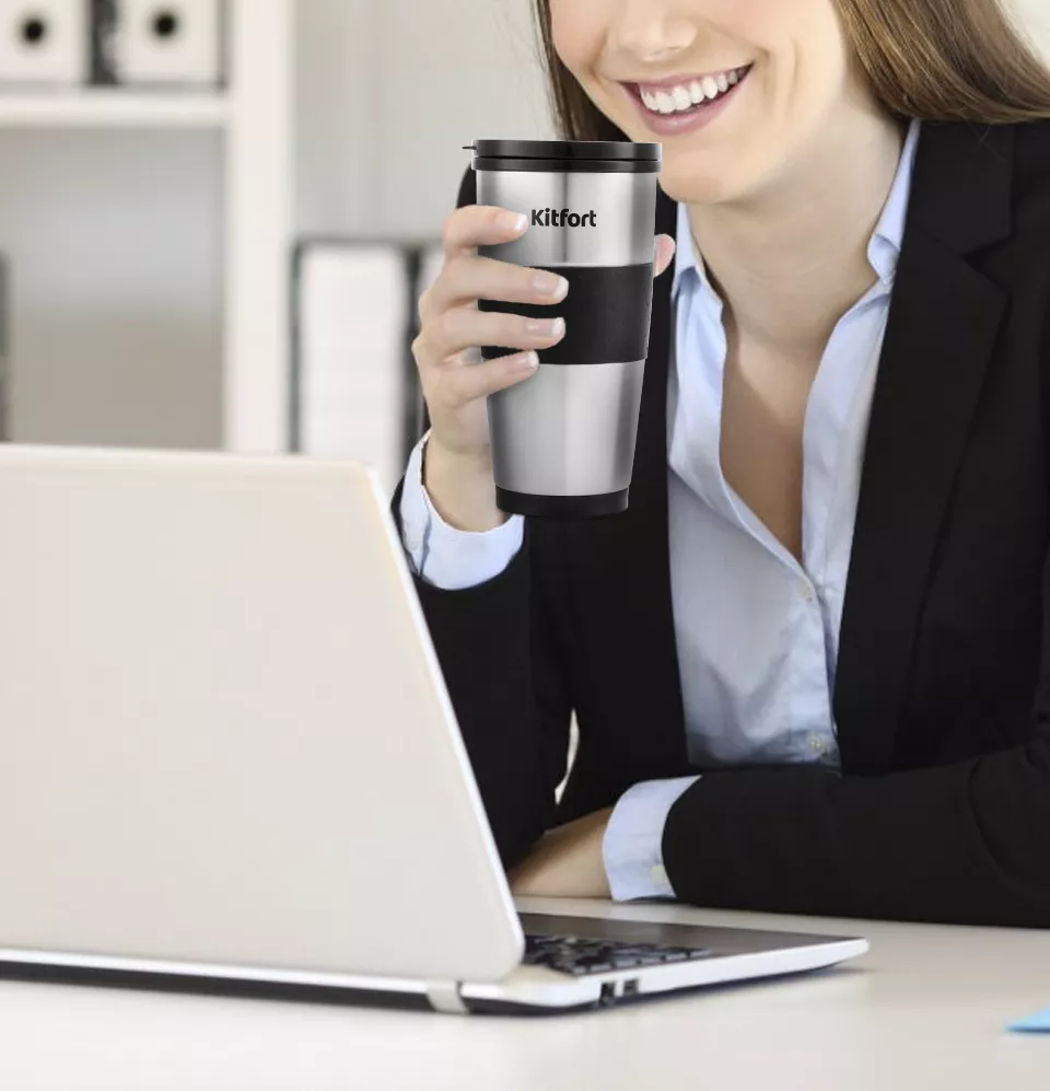 Термокружку можно брать с собой и наслаждаться любимым горячим напитком в дороге, на учебе, на работе. Металлический корпус оснащён резиновым кольцом, чтобы не обжечься.