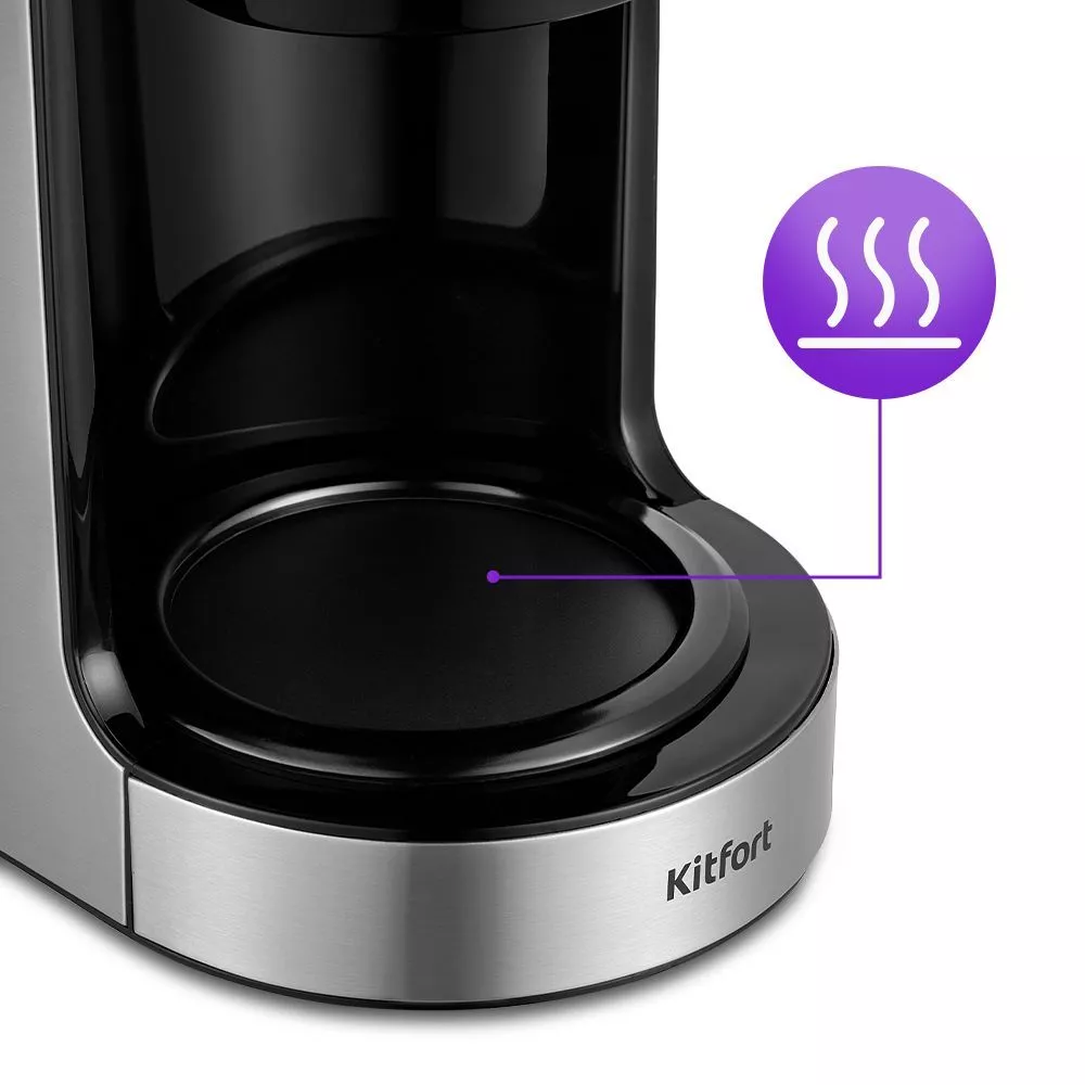 По окончании приготовления кофеварка перейдёт в режим подогрева. Платформа с подогревом, на которой стоит кофейник с готовым кофе, будет горячей в течение 35 минут, затем кофеварка выключится.