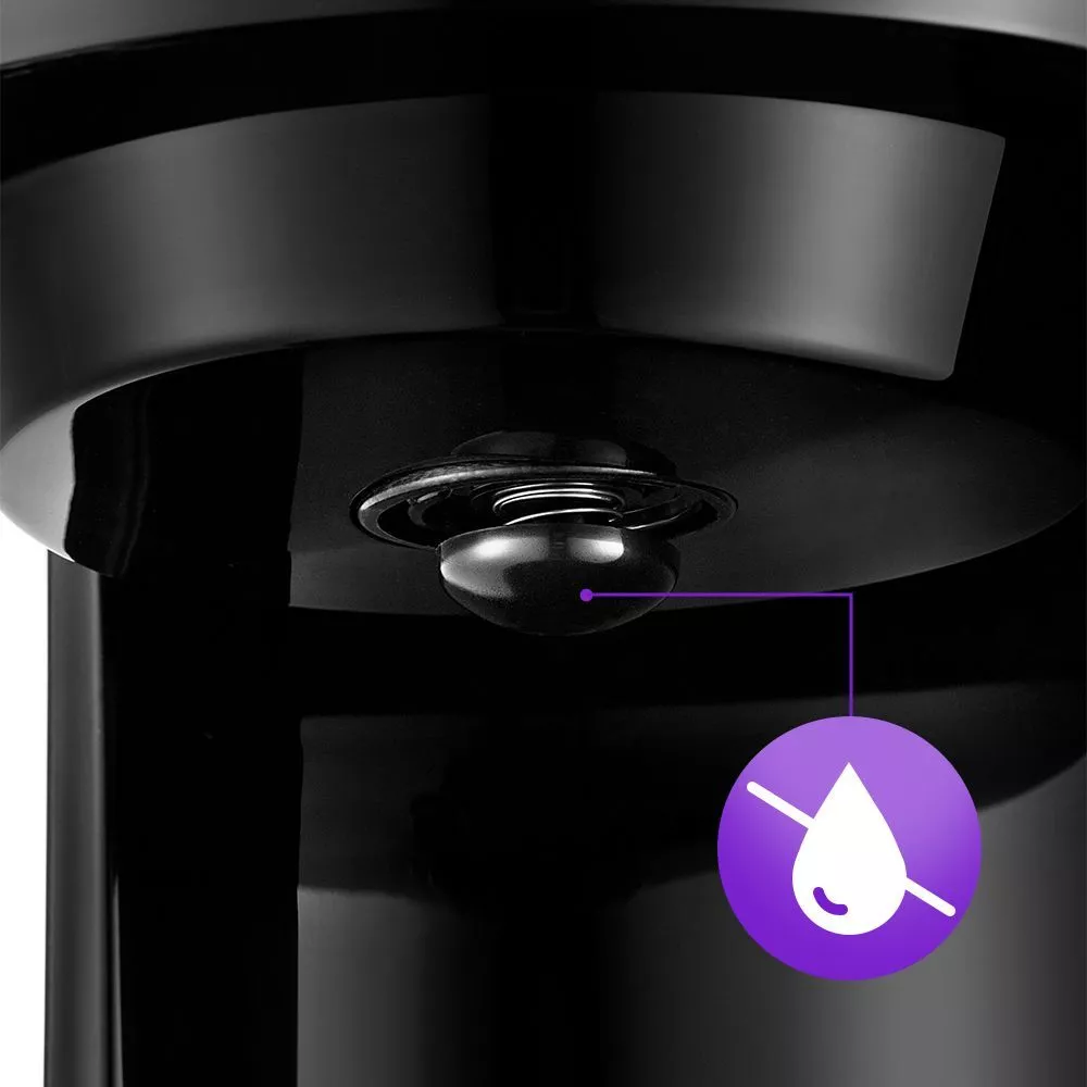 Кофеварка оборудована противокапельной системой - затвором, приостанавливающим подачу кофе при вынимании кофейника из кофеварки. Вы можете налить кофе в чашку, не дожидаясь окончания приготовления.