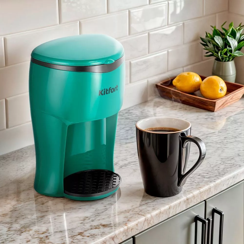 Капельная кофеварка КТ-7310 готовит ароматный чёрный кофе из молотого кофе.