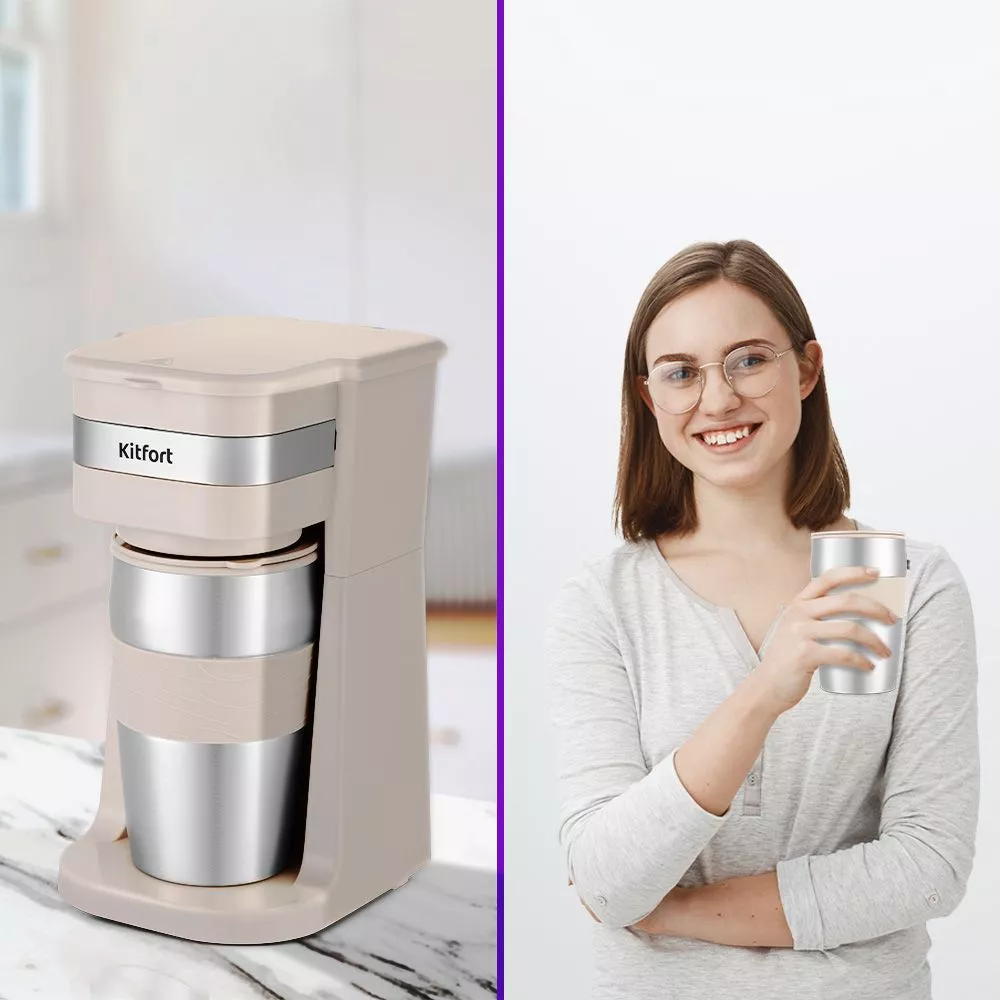 Кофеварка КТ-7317 обладает не только большим функционалом, но и компактным размером и украсит любую кухню! Угостить гостей чашкой горячего кофе или взять любимый напиток с собой по пути на работу? Выбирать вам!