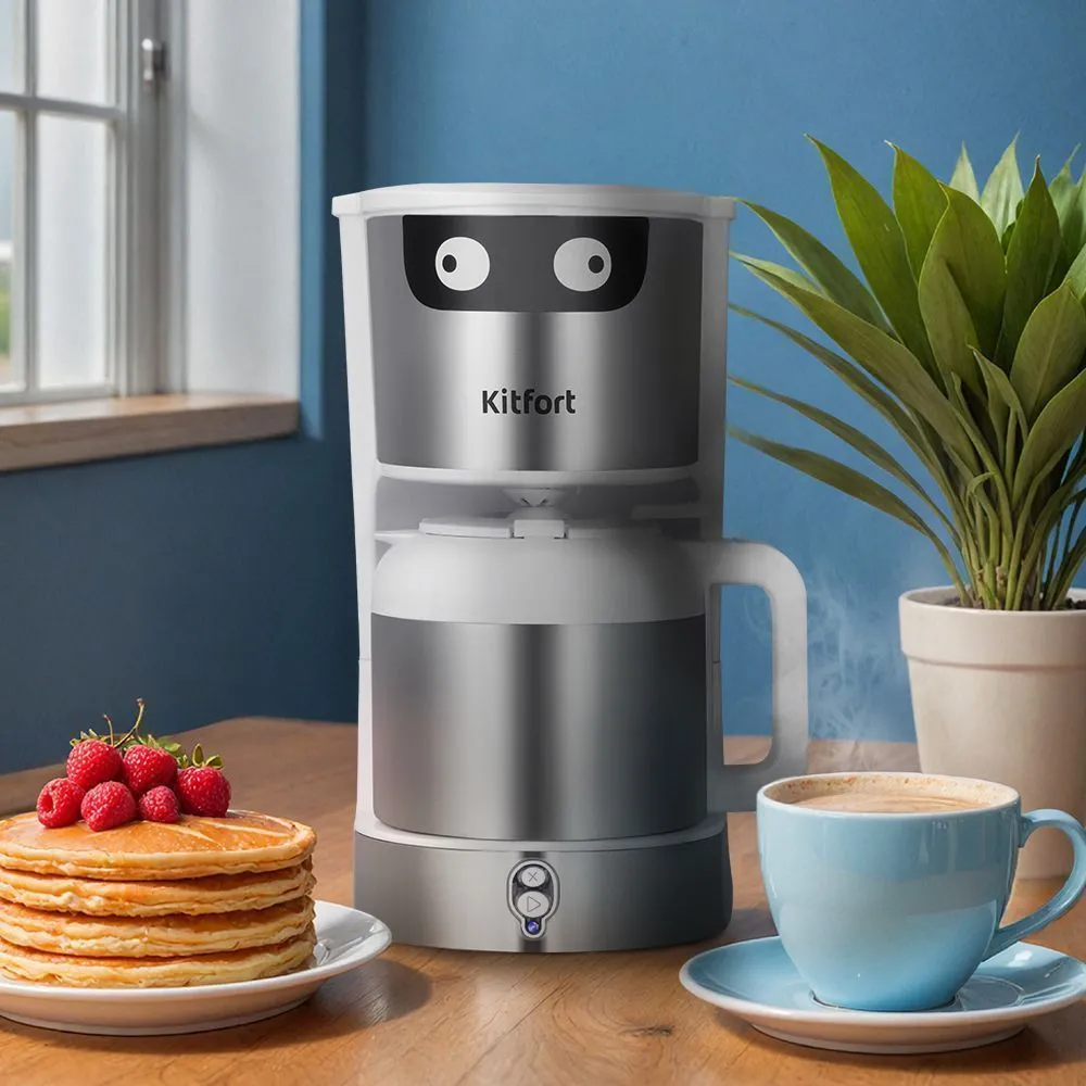 Капельная кофеварка КТ-7326 готовит ароматный чёрный кофе из молотого кофе. Резервуар для воды ёмкостью 1,2 л позволяет за один раз приготовить кофе на 10 чашек (по 120 мл)