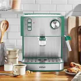 Кофеварка КТ-7441 поможет приготовить кофе эспрессо, капучино или латте, а также другие виды кофе на ваш вкус. С помощью стимера вы можете приготовить молочную пенку, а также подогреть паром остывший чай или молоко.