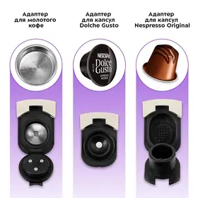 В комплекте идут 2 адаптера для капсул типа Nespresso Original и Dolce Gusto.