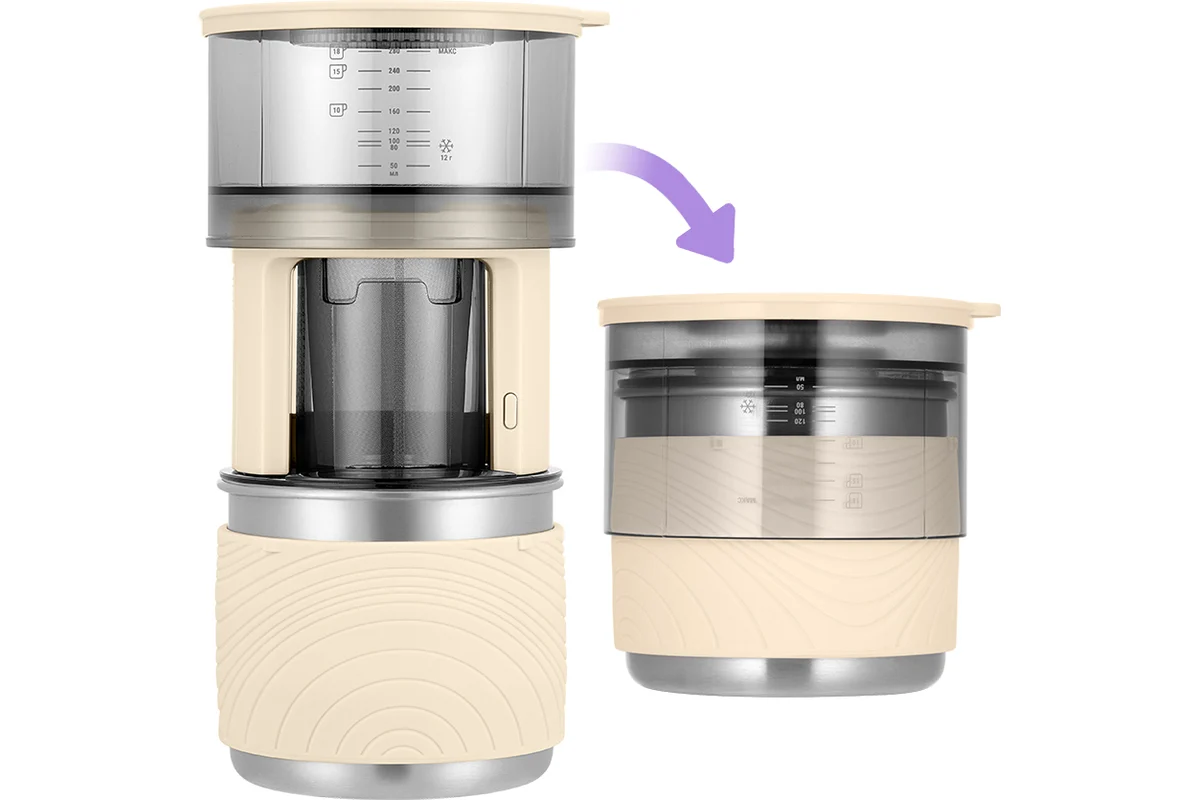 Кофеварка компактно складывается и занимает мало места, она проста и удобна в использовании, а благодаря работе от батареек вы можете взять ее с собой куда угодно.