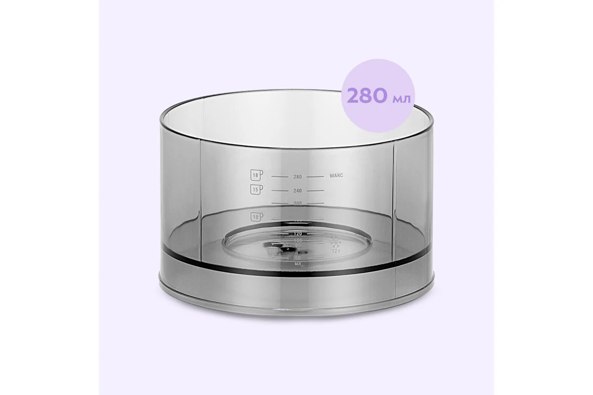 Резервуар для воды емкостью 280 мл позволит приготовить кофе и чай на 1–2 чашки. На резервуаре для воды расположена мерная шкала нужное количество кофе, поэтому вам будет удобно налить нужное количество воды.