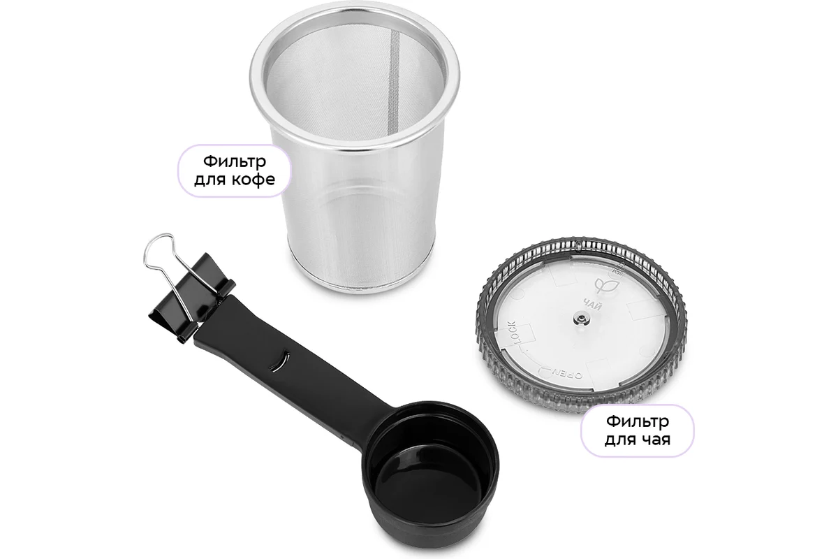 Портативная кофеварка «2 в 1» КТ-7572 готовит ароматный черный кофе из молотого кофе, а также поможет заварить чай.