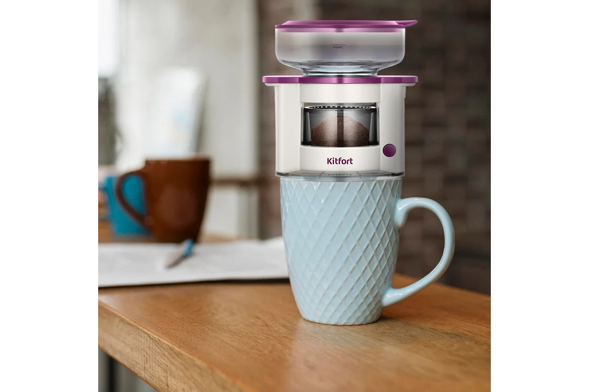 Портативная кофеварка КТ-7576 готовит ароматный черный кофе из молотого кофе.