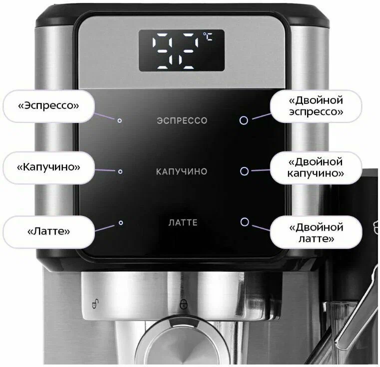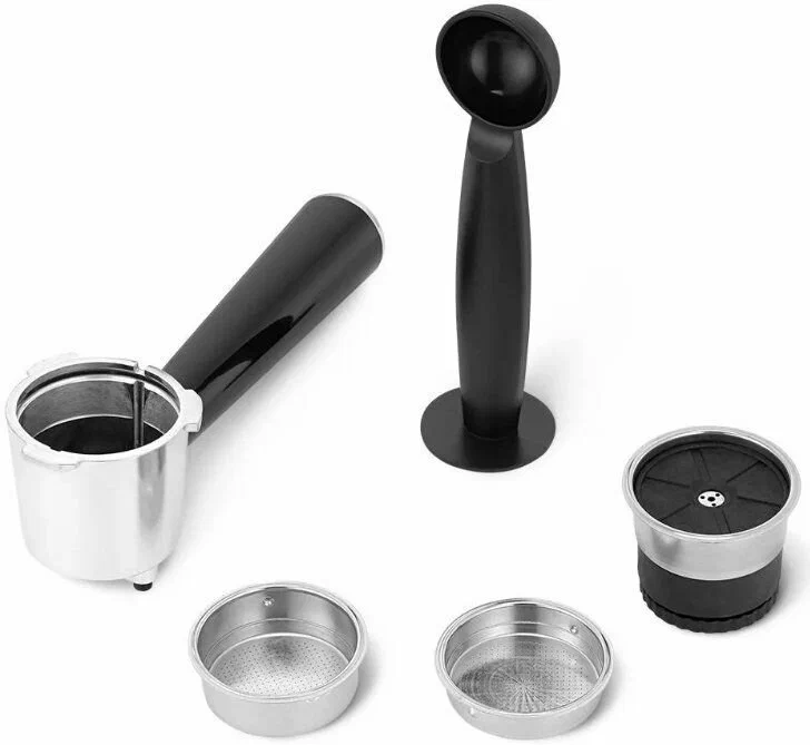 кофеварка — 1 шт, резервуар для воды — 1 шт, резервуар для молока — 1 шт, крышка резервуара для молока с металлической насадкой — 1 шт, трубка забора молока — 1 шт, поддон для капель с решеткой и поплавком — 1 шт, рожок — 1 шт, фильтр - 3 шт, мерная ложка-темпер — 1 шт, адаптер для капсул Nespresso с уплотнительным кольцом — 1 шт