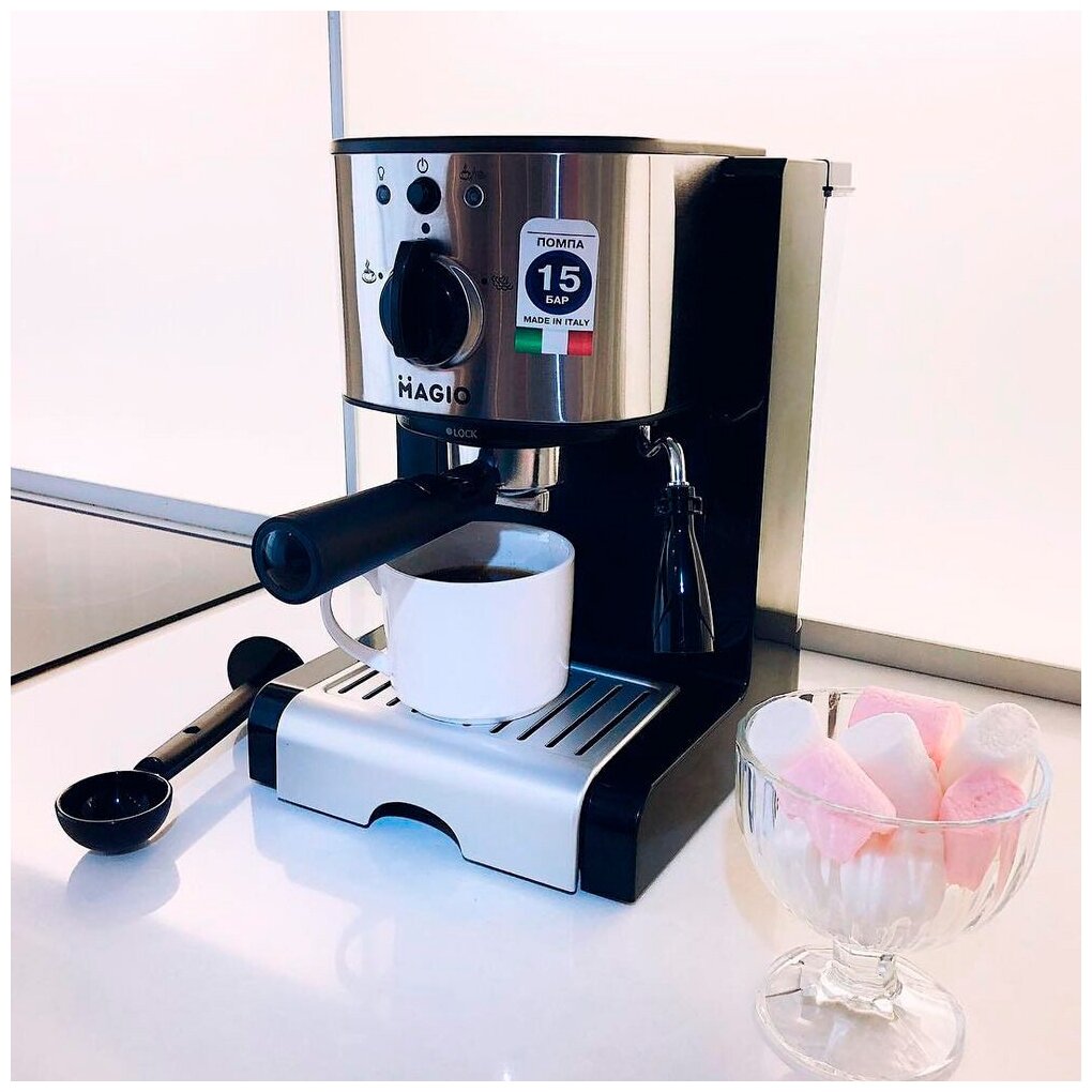 Профессиональная итальянская помпа обеспечивает давление в 15 бар, что делает вкус эспрессо еще более ярким и насыщенным.