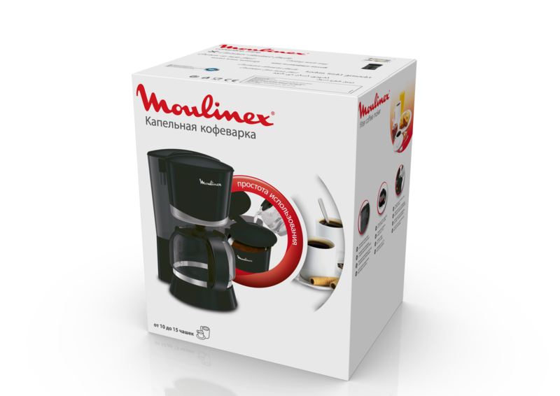 - Стеклянный кувшин емкостью 1,25 л. Капельная кофеварка Moulinex позволяет легко приготовить до 15 чашек кофе благодаря вместительному стеклянному кувшину