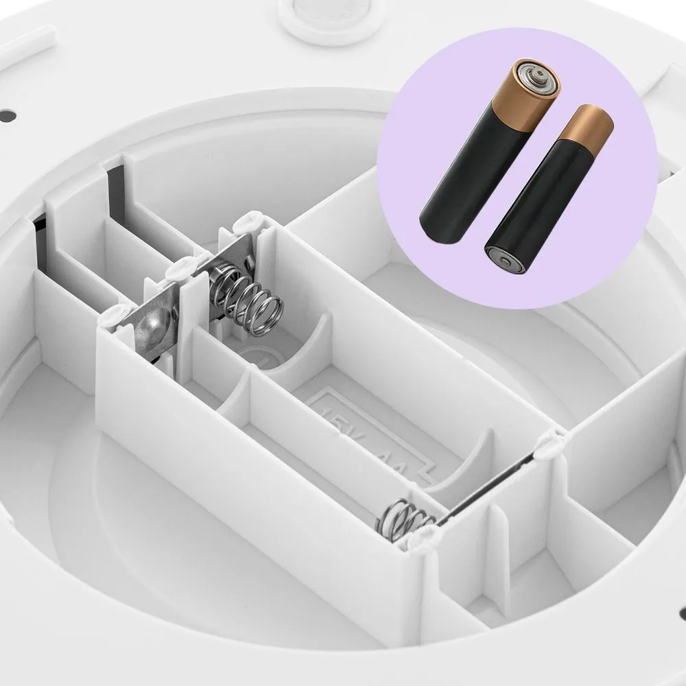 Кофеварка КТ-7573 работает от двух батареек типоразмера АА (батарейки в комплект не входят) - отсек для них расположен на дне устройства. Кофеварка портативна и работает, где угодно.