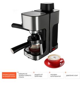 Рожковая кофеварка REDMOND готовит кофе под постоянным давлением 4 бар – в результате напиток получается насыщенным и ароматным.
