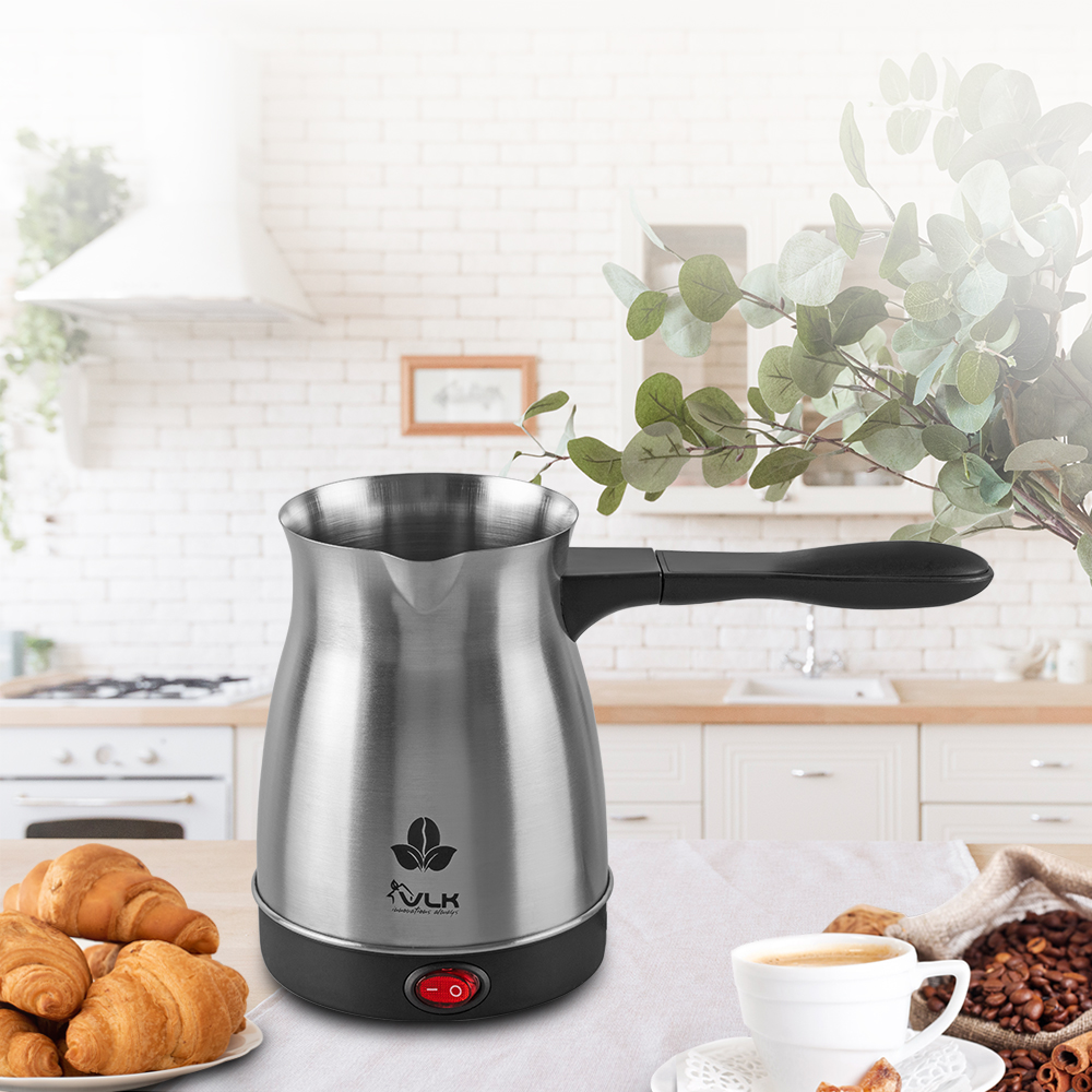 Светодиодный индикатор включения, Скрытый нагревательный элемент, Автовыключение при отсутствии воды, Тип используемого кофе: молотый, Можно использовать для кипячения воды