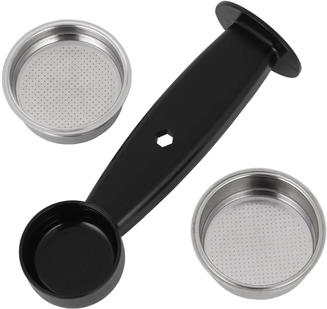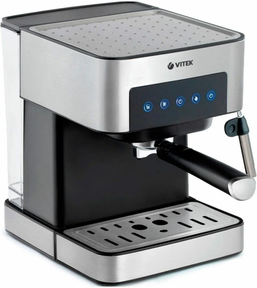 Приготовление кипятка; Индикация заполнения каплесборника; Съемный резервуар для воды; Пресс для утрамбовки молотого кофе; Насадка панарелло; Рожок с клапаном давления; В комплекте: мерная ложка, металлический фильтр
