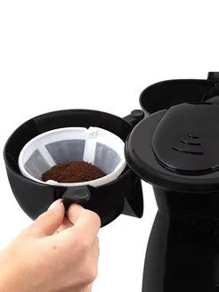 Кофеварка, съёмный держатель с нейлоновым фильтром, колба для кофе, мерная ложка, документация