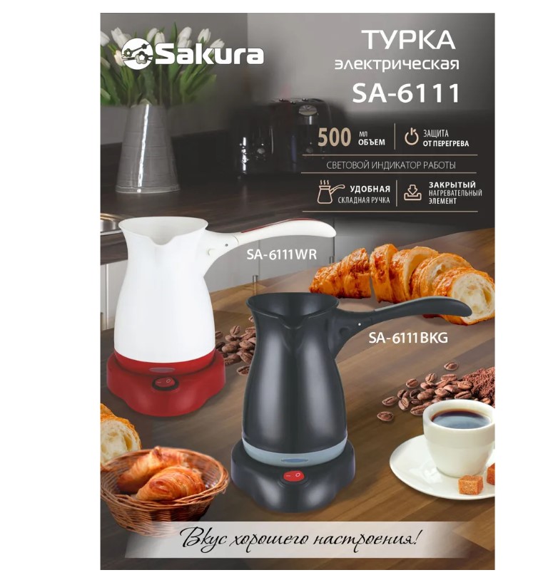Турка электрическая SAKURA SA-6111WR (0.5) бел/красн