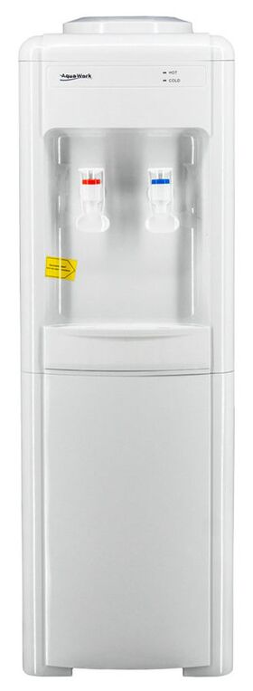 Классический напольный кулер для воды Aqua Work 16-L - без украшений, но с мощным нагревом и компрессорным охлаждением. Расположенные сзади два переключателя позволяют включать и выключать блоки нагревателя и охлаждения по отдельности.