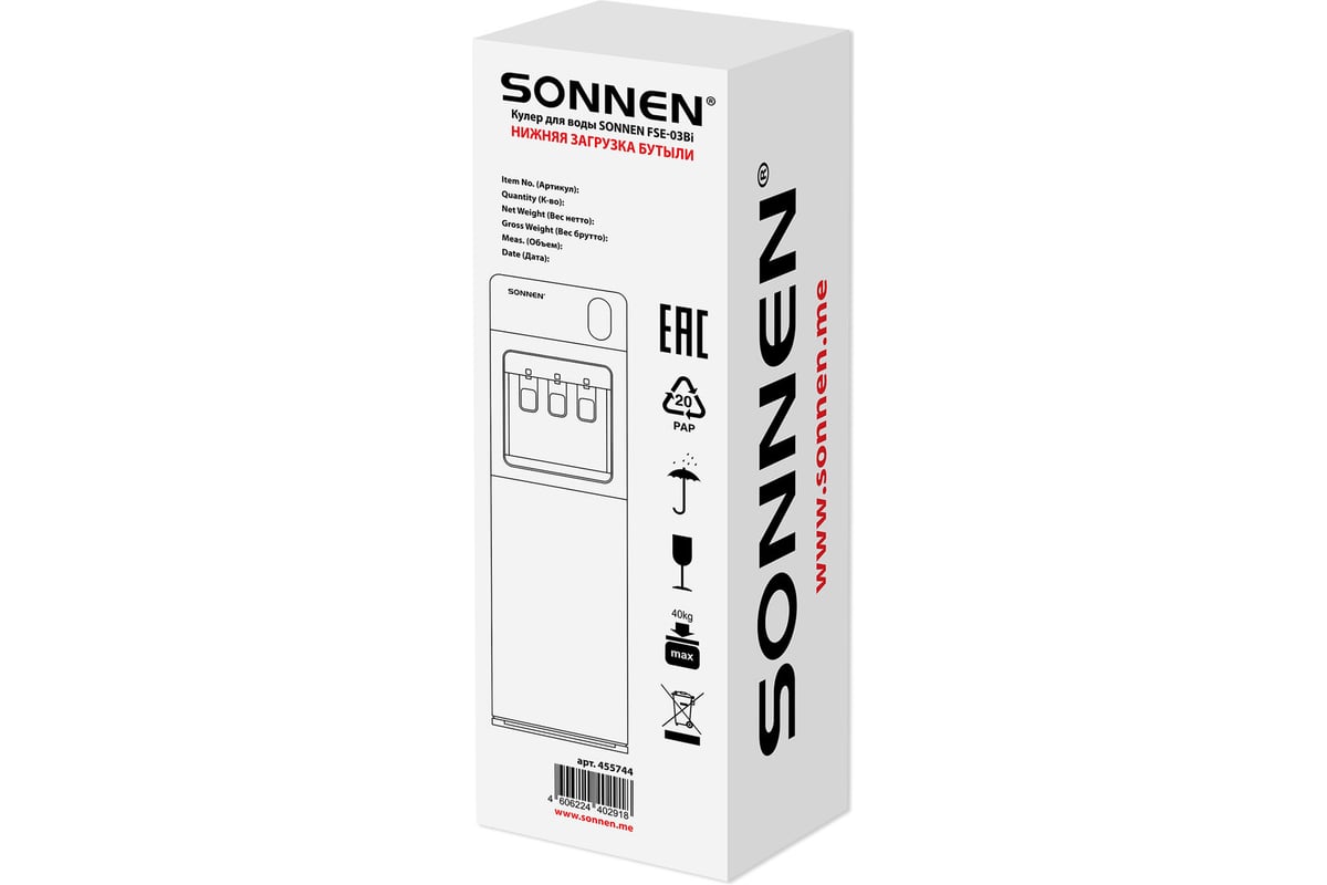 Размещение бутыли с водой