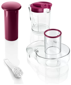 Укомплектована металлической сеточкой, щеточкой для очистки и сепаратором для пены. Сетевой шнур длиной 1.2 метра на время хранения сворачивается и убирается в специальный отсек. Наличие прорезиненных ножек владелец устройства также оценит по достоинству. Соковыжималка имеет габариты 31x31.2x18 см и вес в 5.3 килограмма, благодаря чему займет видное место на кухне и будет ее украшать.