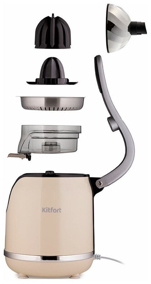 Комплектация 1. Соковыжималка – 1 шт. 2. Крышка конуса – 1 шт. 3. Большой конус – 1 шт. 4. Маленький конус – 1 шт. 5. Фильтр – 1 шт. 6. Лоток для сока – 1 шт. 7. Шпиндель – 1 шт.