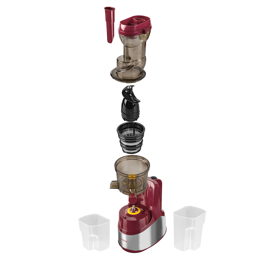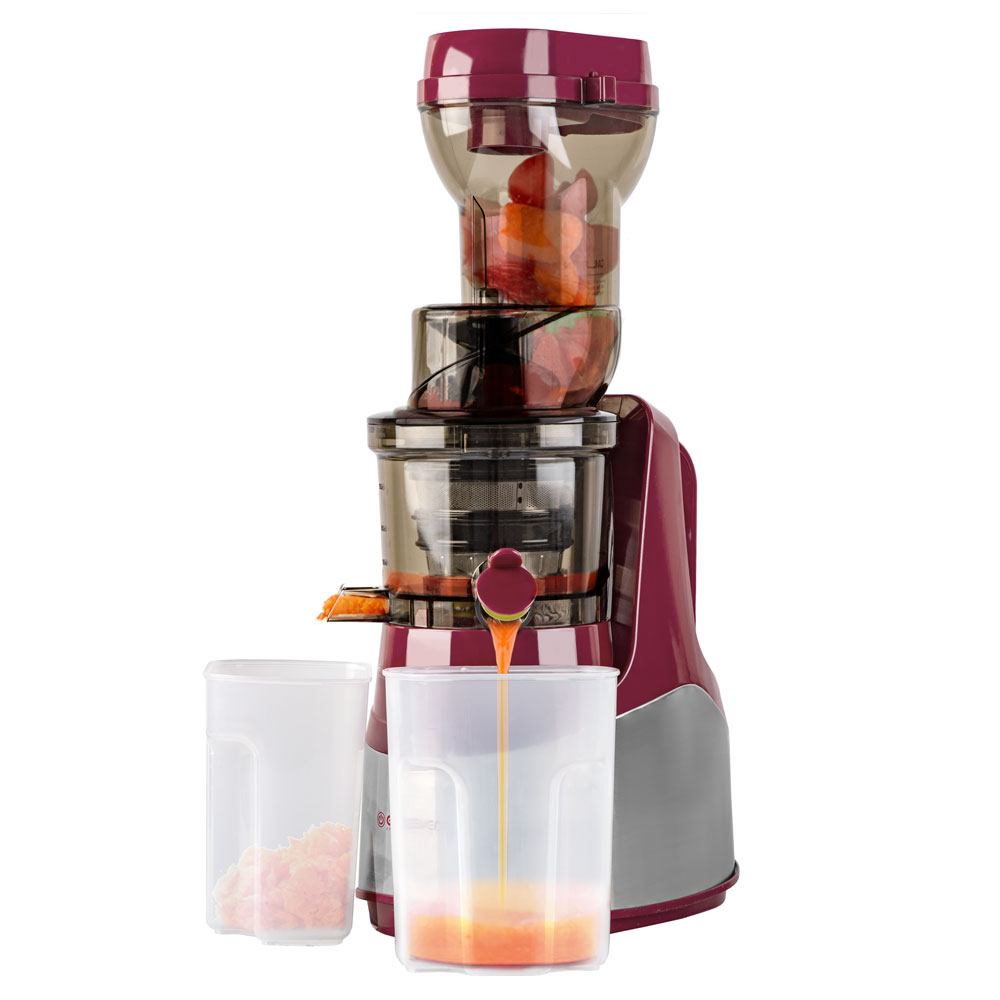 Мощный мотор, Функция реверс, Система защиты двигателя от перегрева, Прорезиненные ножки для устойчивого размещения, Прозрачная емкость для сока и мякоти, Низкий уровень шума, Материал фильтра: нержавеющая сталь, Современный дизайн, Экстра широкое загрузочное отверстие – 75 мм , Автоматическое деление сока от мякоти, Функция «капля-стоп», Безопасна и легка в использовании, Легкая сборка, Холодным отжим
