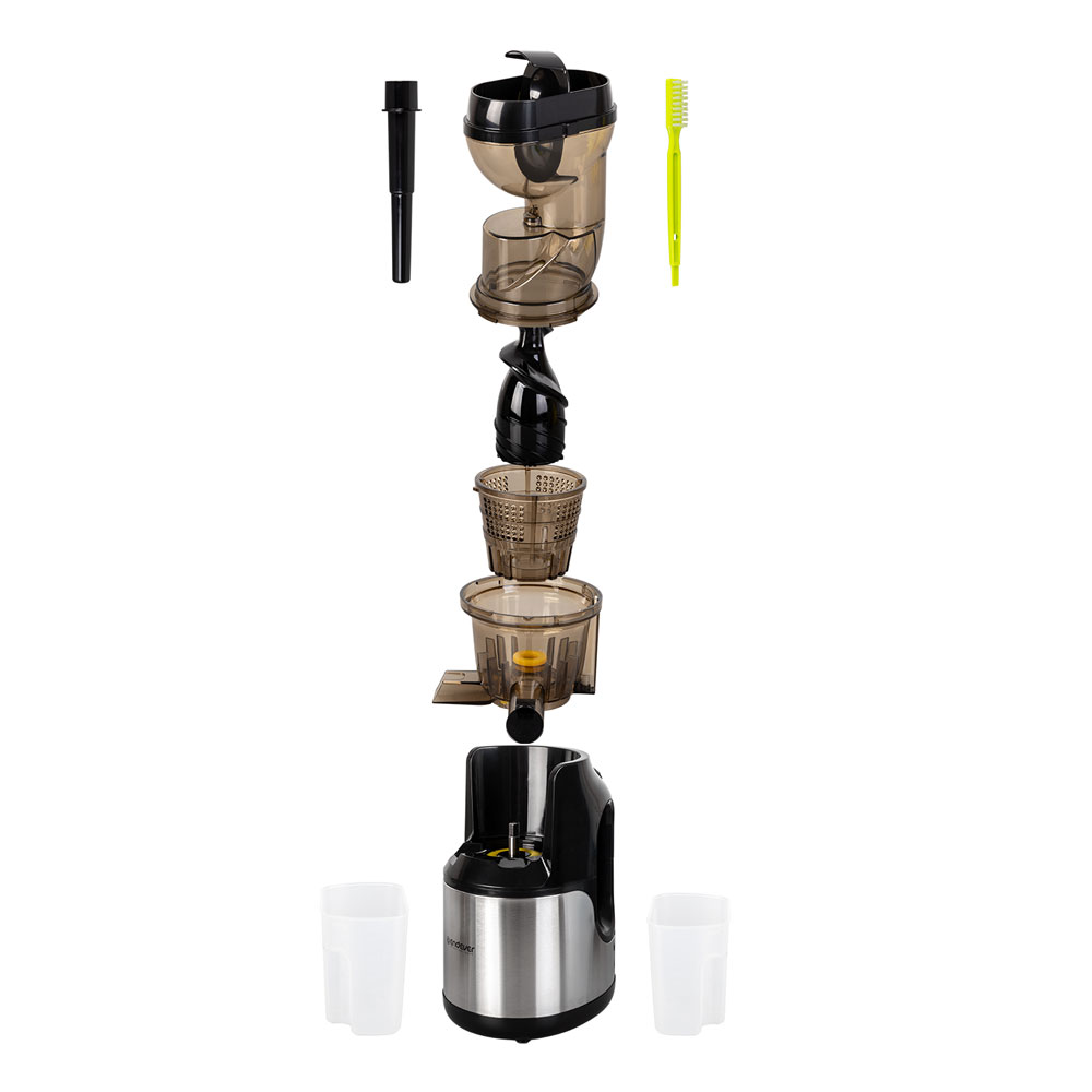 Мощный мотор, Функция реверс, Система защиты двигателя от перегрева, Прорезиненные ножки для устойчивого размещения, Прозрачная емкость для сока и мякоти, Низкий уровень шума, Материал фильтра: нержавеющая сталь, Современный дизайн, Экстра широкое загрузочное отверстие – 75 мм , Автоматическое деление сока от мякоти, Функция «капля-стоп», Безопасна и легка в использовании, Легкая сборка, Холодным отжим