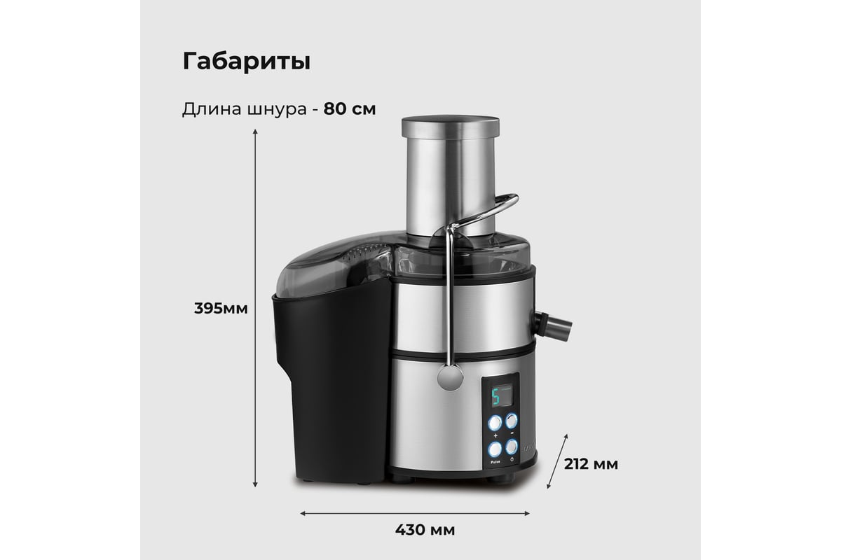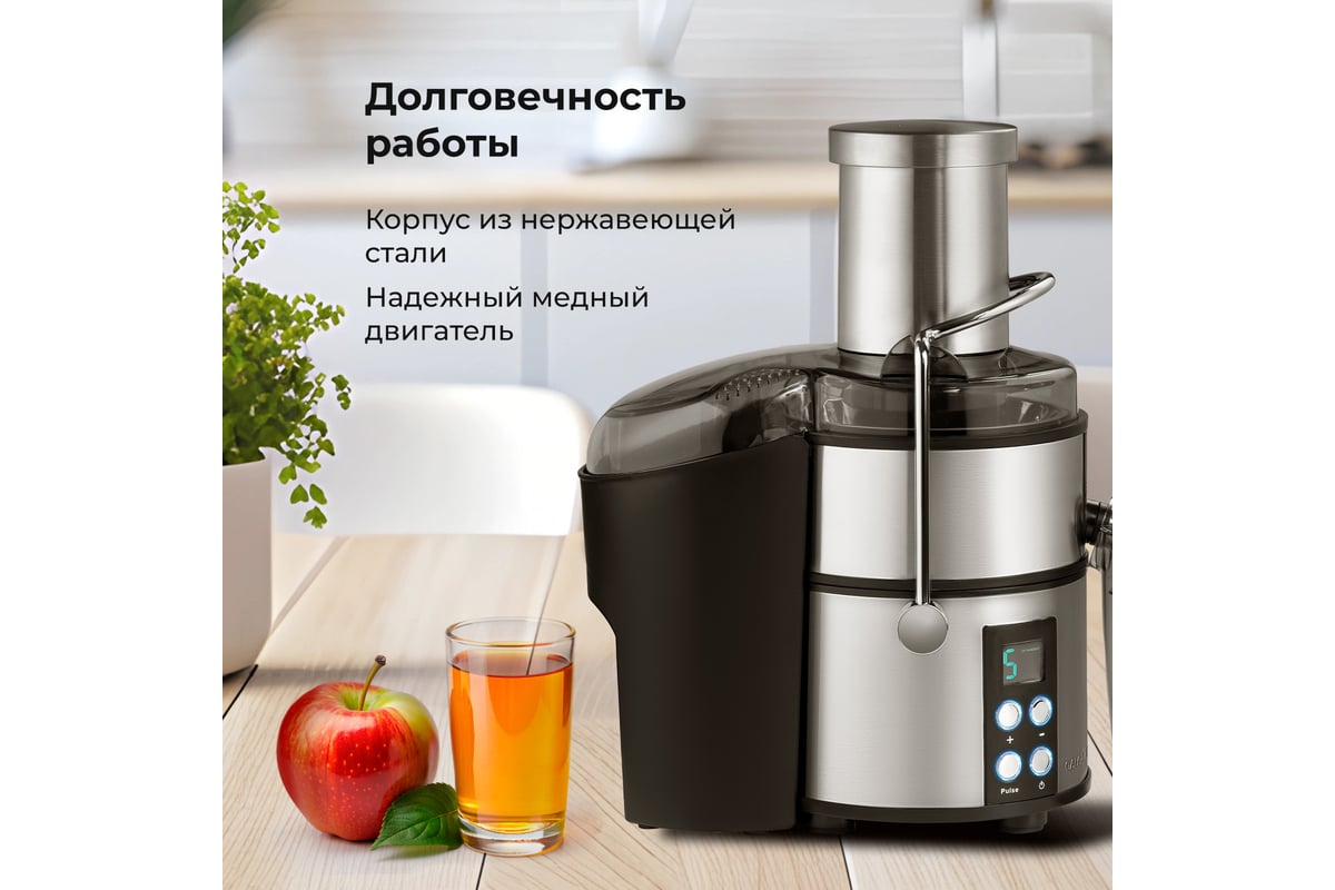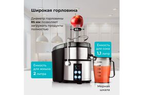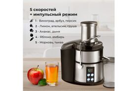 Соковыжималка предлагает пять скоростей работы и импульсный режим, делая ее идеальной для различных типов фруктов и овощей. Компактная и стильная, она прекрасно впишется в любой интерьер кухни и станет вашим незаменимым помощником в создании здоровых и вкусных напитков.