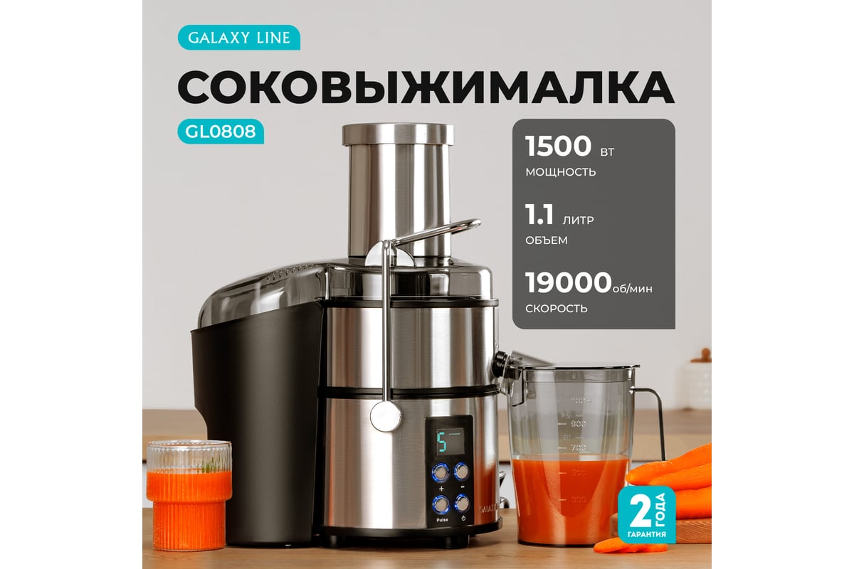 Объем контейнера для сока составляет 1,1 л, а для жмыха — 2 л, что позволяет готовить большое количество сока за один раз. Благодаря системе защиты от перегрева и функции "Капля-стоп", соковыжималка GALAXY LINE GL 0808 гарантирует безопасность и чистоту при использовании. Прибор включает в себя книгу рецептов, которая поможет вам разнообразить ваш рацион и вдохновит на новые кулинарные открытия.