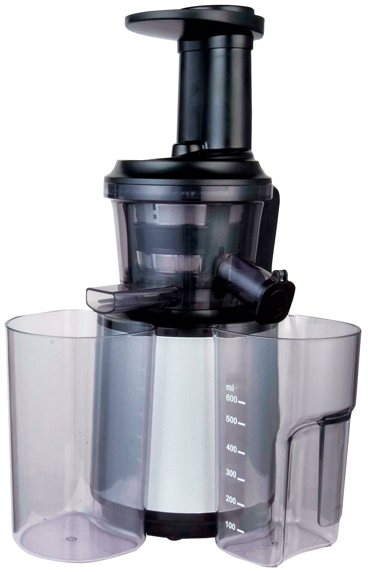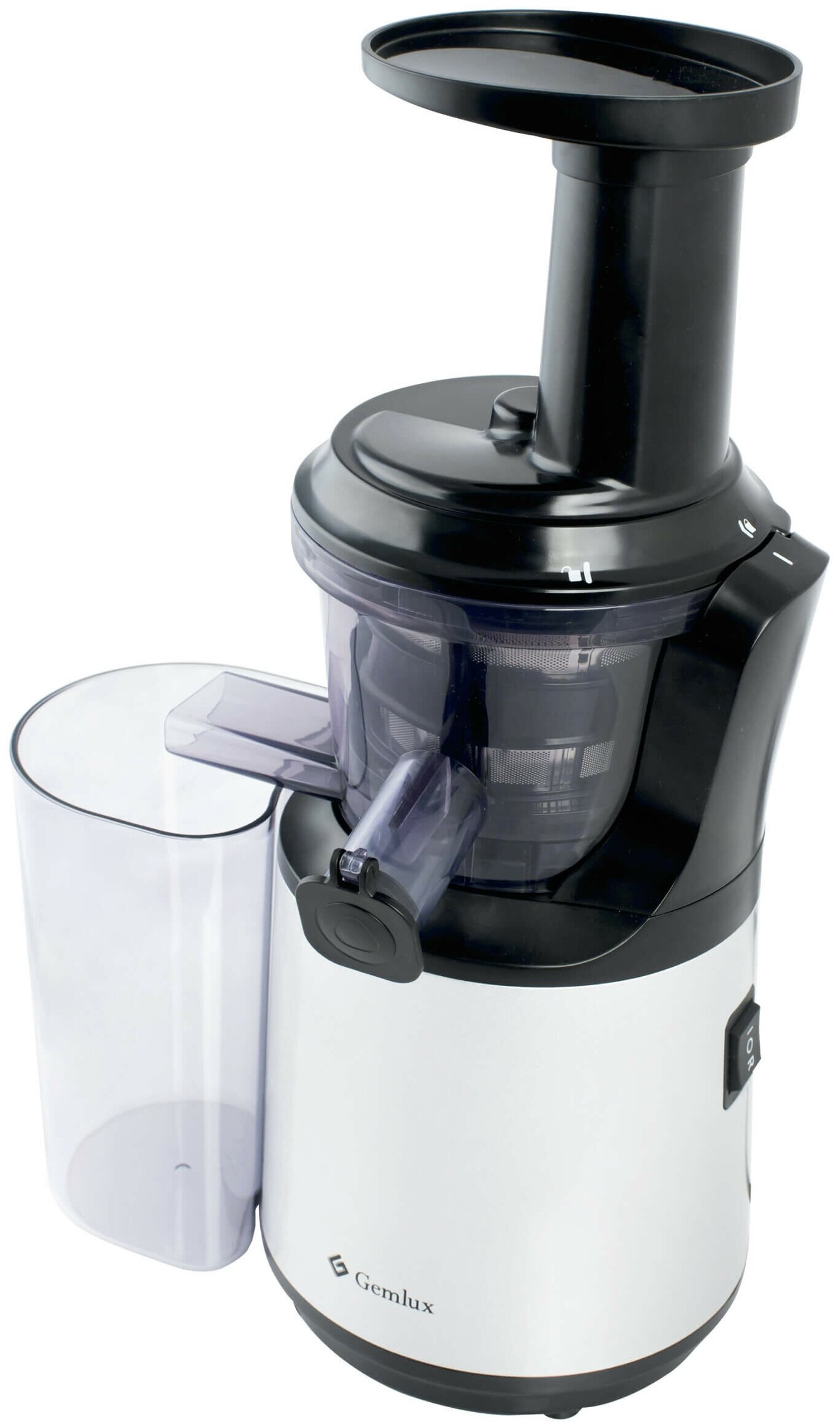 количество шнеков: 1; резервуар для сока: стакан; максимальная скорость вращения: 70 об/мин; загрузочный лоток