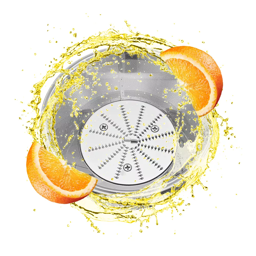 На боковой стороне соковыжималки находится регулятор скоростей. Благодаря ему вы можете выбрать для каждого плода оптимальную скорость, чтобы выжать из него как можно больше сока.