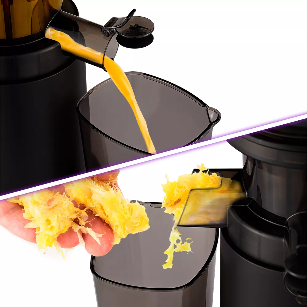 Низкая скорость вращения на 58 об/мин обеспечивает значительно более низкую температуру в процессе отжима, что способствует сохранению питательной ценности продуктов. В соковыжималке сок почти не вспенивается и получается с небольшим количеством пены.