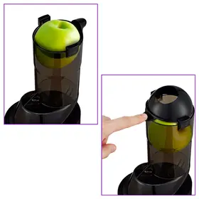В загрузочную горловину можно подавать продукты целиком без предварительной нарезки. Например, яблоки, груши, мелкие очищенные от кожуры мандарины и другие не сильно твёрдые фрукты и овощи