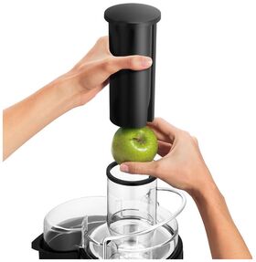 Соковыжималка позволяет отжимать практически любые фрукты и овощи. Для продуктов разной твёрдости предусмотрено 2 скорости. После отжима сока – в контейнер попадает сухой жмых, который потом можно утилизировать или использовать в других рецептах.