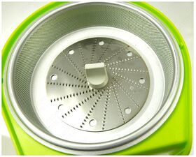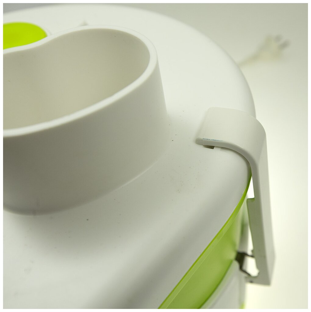номинальная потребляемая мощность: 160 Вт; производительность - не менее 700 г/мин, предназначена для получения в домашних условиях сока из твердых овощей и фруктов; резервуар для сока: стакан; загрузочный лоток
