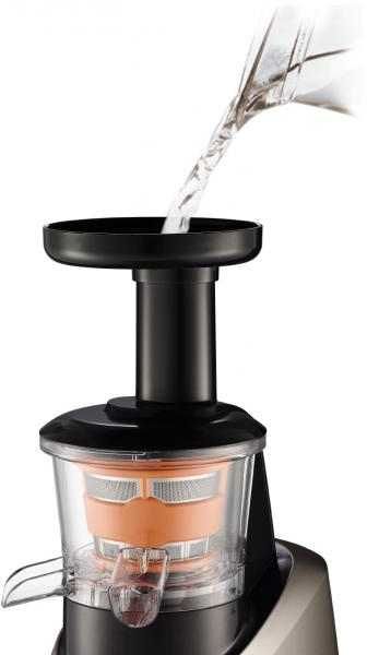 Особенности Прессовый метод отжима, можно готовить сок из фруктов, овощей, ягод и трав, прямая подача сока, функция реверса, возможность мыть в посудомоечной машине. В комплекте соковыжималка, кувшин для сока, кувшин для жмыха.