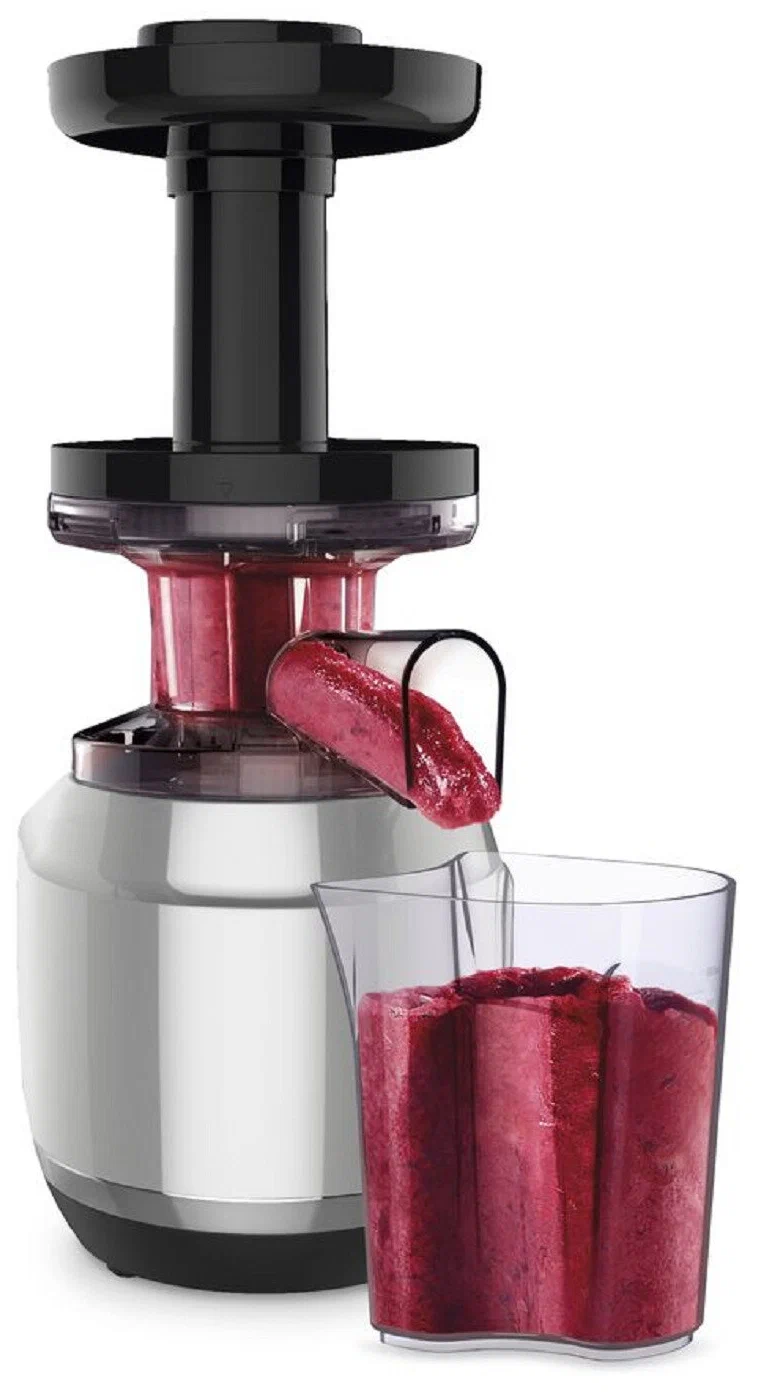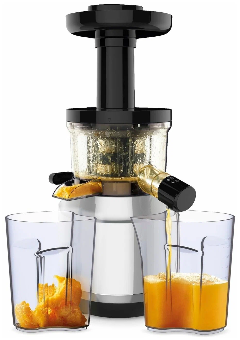 Сенсорное управление; Отключение при перегреве; Индикация включения; Индикация режима работы; Индикация выбранной скорости; Антикапельная система носика; Фильтр для сока; Металлических фильтров - 2 шт.; Встроенный резервуар для мякоти; Макс. скорость вращения - 80 об/мин