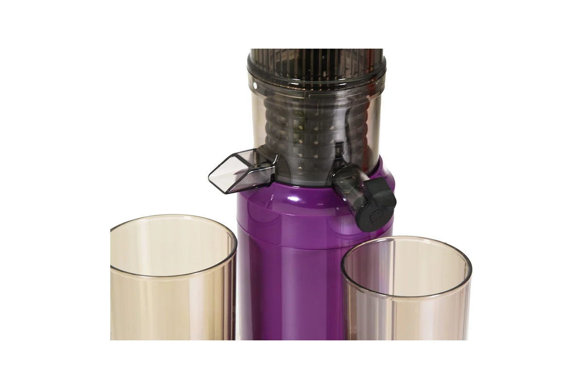 Прибор имеет функцию реверс, позволяющую при необходимости включить движение шнека в обратную сторону. В комплекте соковыжималки предусмотрены емкости для сока и жмыха объемом 500 мл.