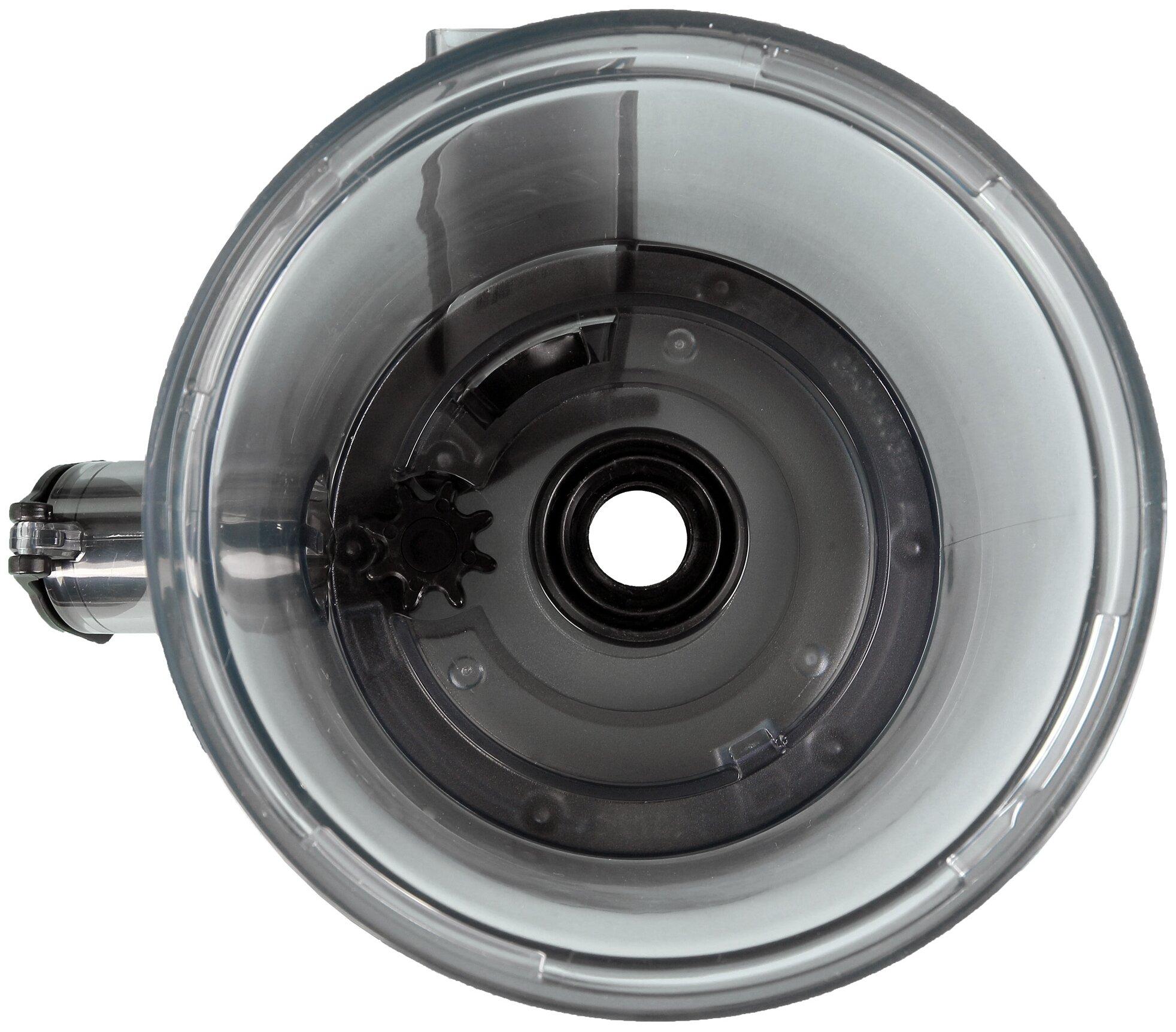 самоочистка; возможность работы с твердыми/мягкими/замороженными ингредиентами; насадка для замороженных десертов; 2 последовательных цикла 15 минут работы, затем 30 минут отключена; количество шнеков: 1; резервуар для сока: стакан; материал сетки: нерж. сталь; максимальная скорость вращения: 45 об/мин; загрузочный лоток; щеточка для чистки