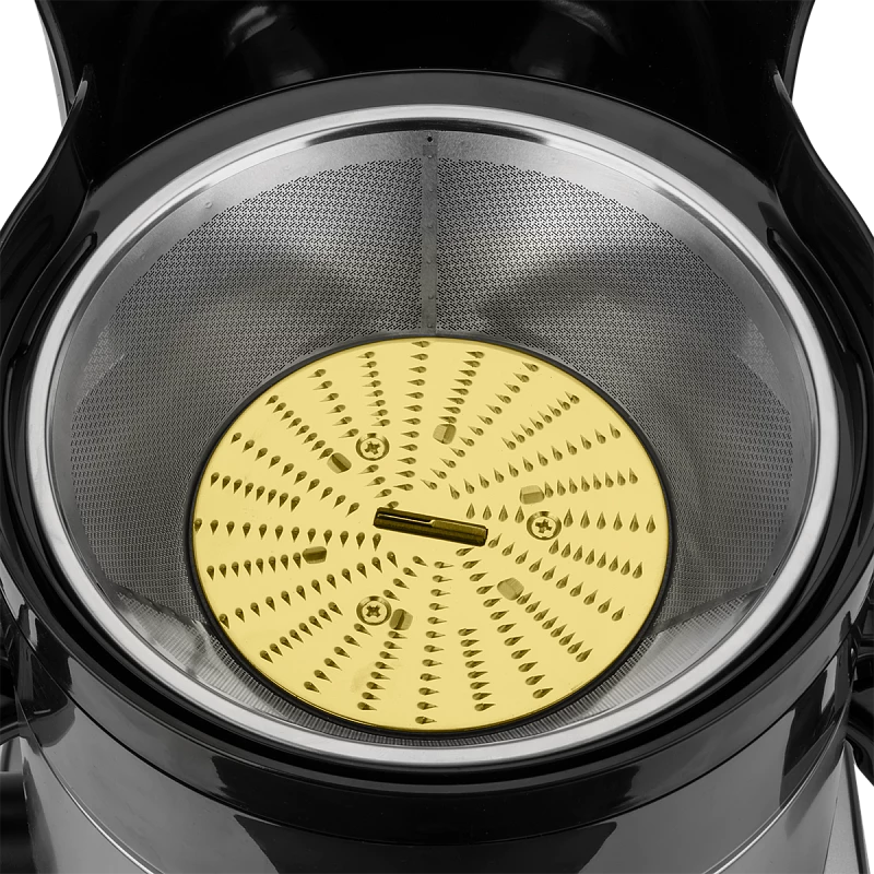 Она обеспечивает эффективный отжим сока из свежих овощей и фруктов. Сок выжимается до последней капли, оставляя жмых сухим: мощный двигатель 2400 Вт и 24 ряда режущих зубцов на диске качественно отделят волокна от сока. При этом пользоваться прибором совсем несложно: две скорости переключаются обычной поворотной ручкой. Хранить выжатый сок можно прямо в кувшине объёмом 1 л. Он прекрасно помещается в холодильник, а пеносепаратор позволит вам налить чистый сок. Зачем резать фрукты и овощи, если можно загрузить их в соковыжималку целиком? Размеры отверстия это позволяют.