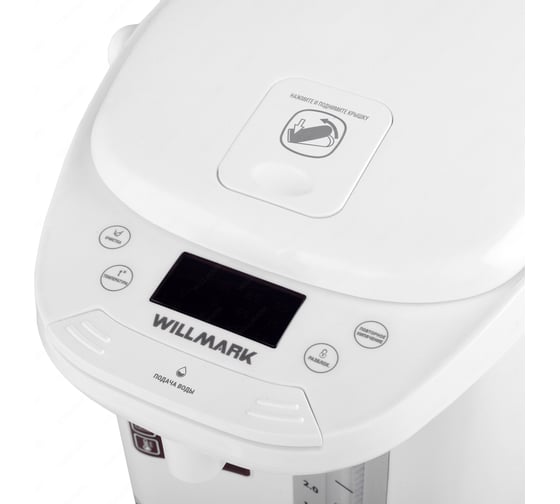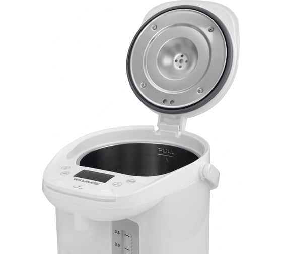 Чайник-термос WILLMARK WAP-607W – отличный помощник на кухне, сочетает в себе функции электрочайника и термоса. Имеет стильный внешний вид и минималистичный дизайн. Термопот служит для подачи воды заданной температуры и поддержания температуры воды с помощью периодического включения и отключения нагрева. Дисплей проинформирует о заданных параметрах. Термопот оснащен функцией выбора температуры и может не только вскипятить, но и нагреть воду до температуры 45, 55, 65, 75, 85 и 95 °С, что очень удобно при заваривании различных сортов чая.